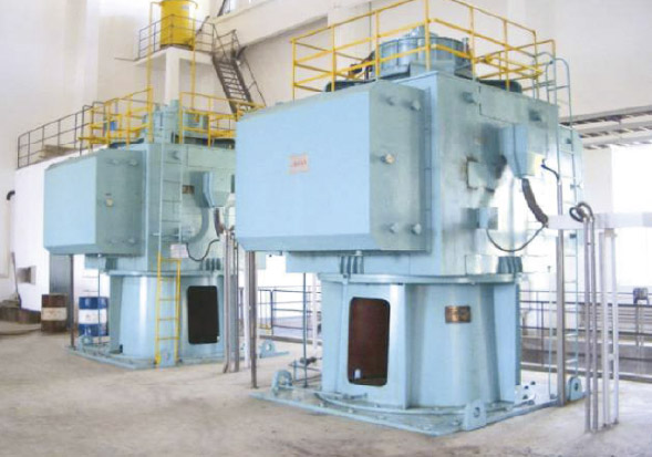 我公司针对火电机组循环水泵、凝结水泵配套的YL、YLST、YLKS系列电动机立式安装及承受轴向力等特点,开发研制了该系列产品,一种为电动机不承受除本身转子外的轴向负荷,另一种为电动机承受水泵外加轴向负荷。根据外加负荷的大小,上轴承分别采用推力球面轴承或平面推力瓦轴承。功率为450kW-6000kW,具有效率高、堵转电流低、噪音低、振动小、可靠性好、安装维护方便等显著优点,完全可以满足该类电机承受大推力的工况要求。